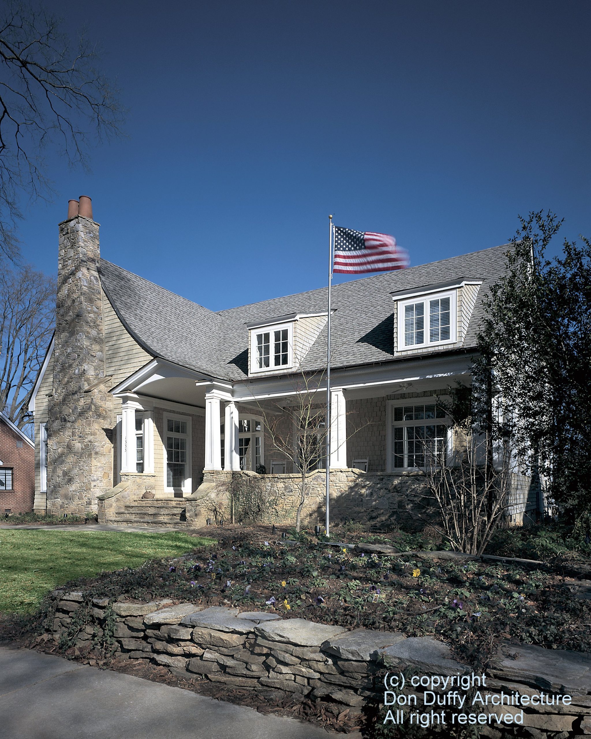 In addition to mastering complex and large custom home designs, Don’s firm enjoys taking on renovations and additions.  For instance, this project was an addition on the rear of a house, but as you can see, the company doesn’t treat anything with less than the best of care with regard to concept, massing, details and precision construction.  Note the BEFORE photo at the bottom and the AFTER photo at the top.